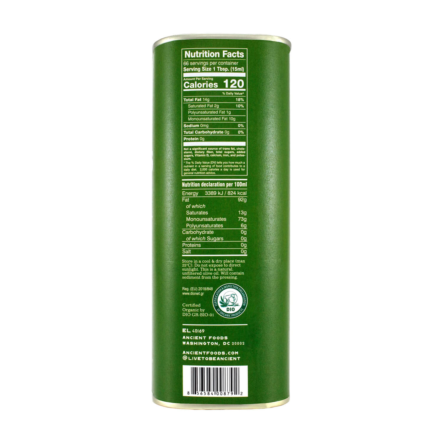 ANCIENT FOODS™ KERÓS EXTRA VIRGIN ORGANIC GREEK OLIVE OIL (1L)