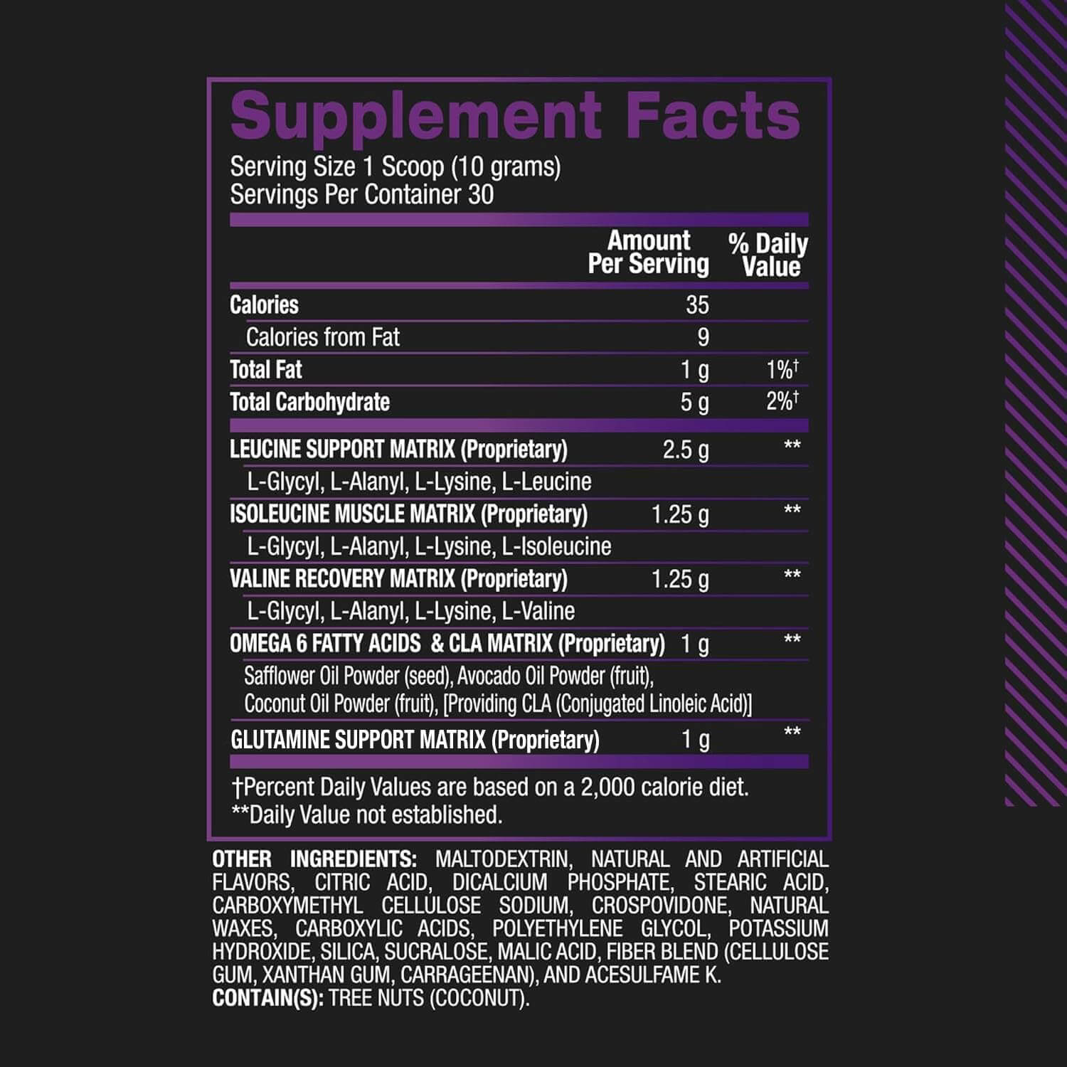 - FAST-ABSORBING BCAA BLEND: Our BCAA powder formula contains a fast-absorbing branched-chain amino acid (BCAA) blend and CLA Matrix that helps to support muscle recovery while preventing muscle breakdown.*