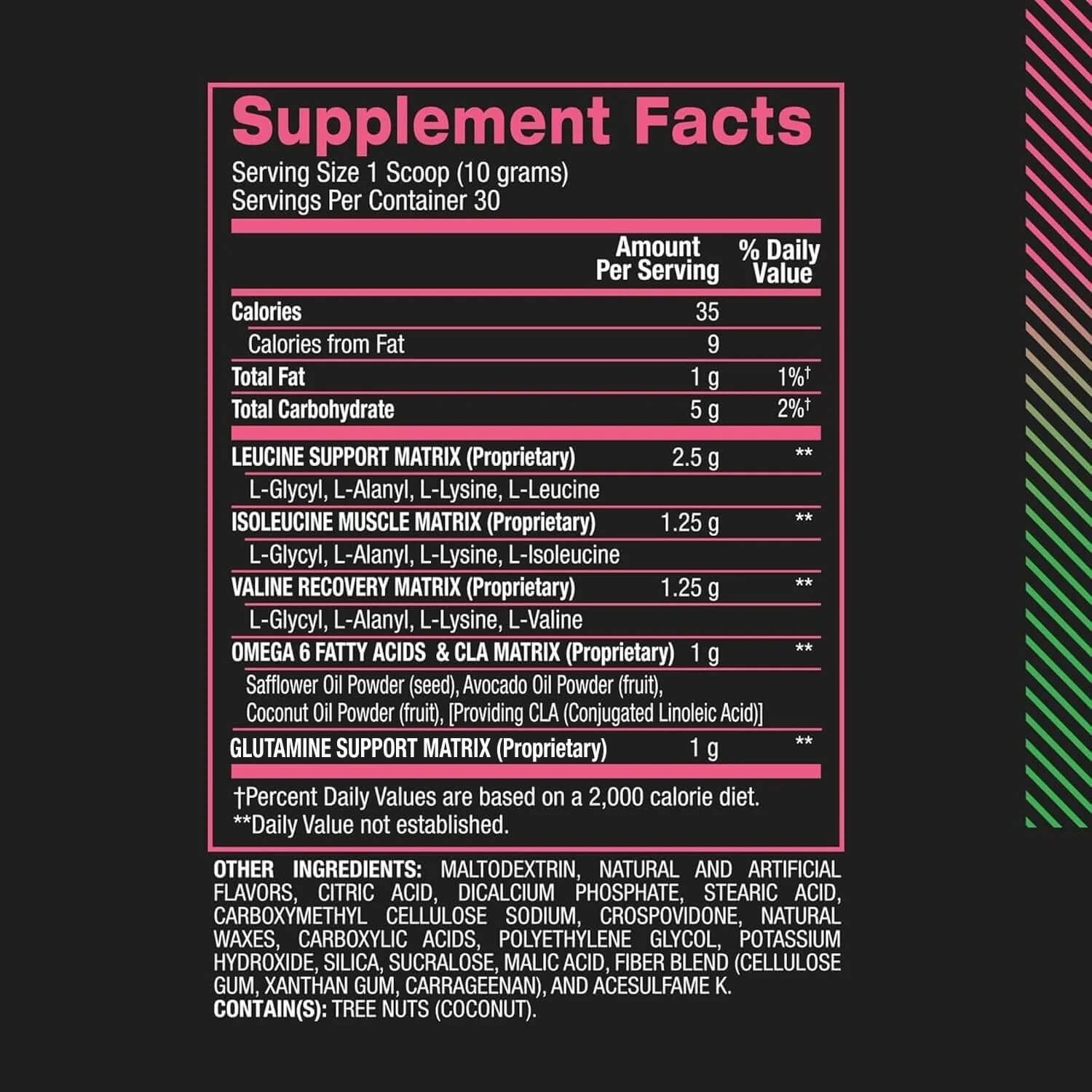 - FAST-ABSORBING BCAA BLEND: Our BCAA powder formula contains a fast-absorbing branched-chain amino acid (BCAA) blend and CLA Matrix that helps to support muscle recovery while preventing muscle breakdown.*