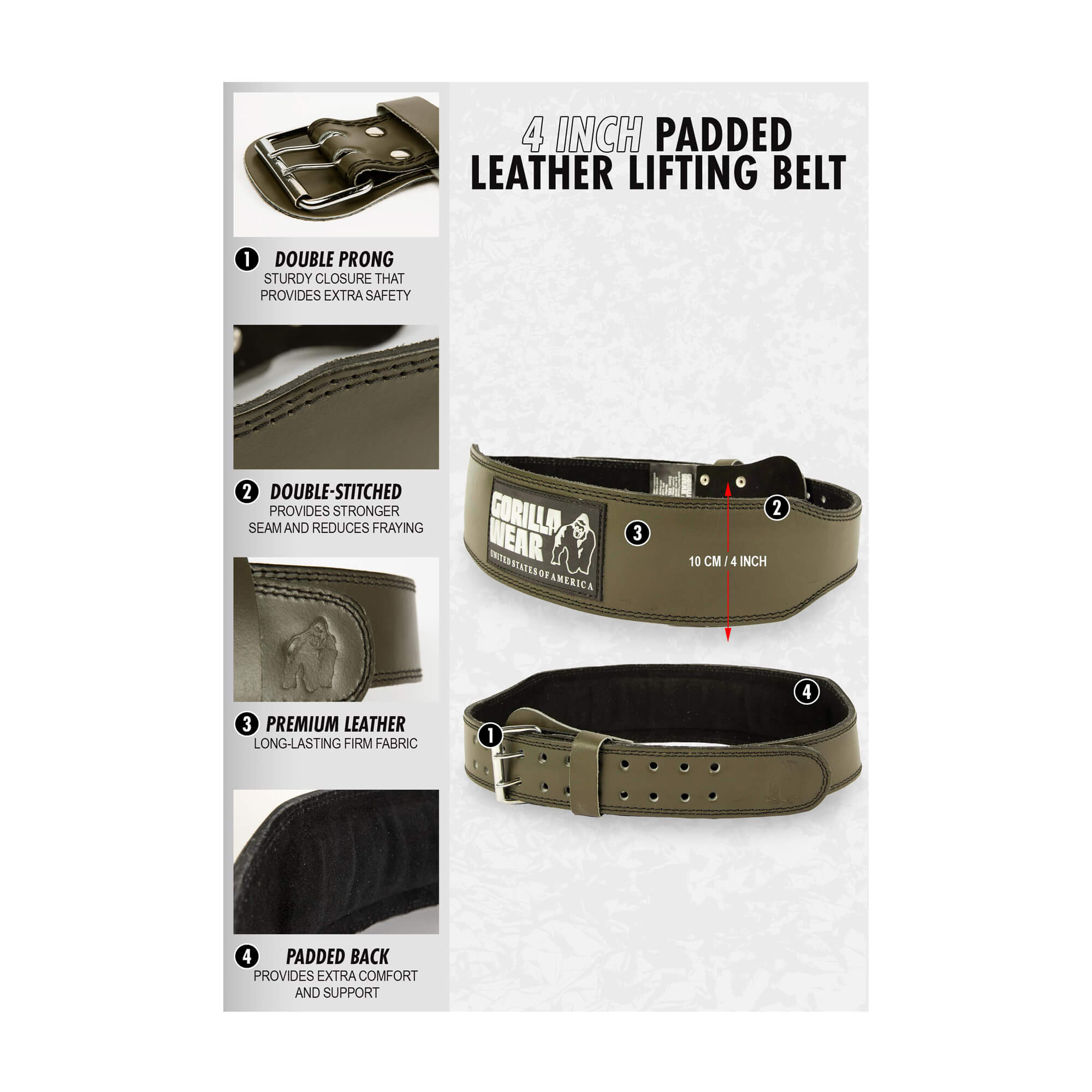 GORILLA WEAR 4 INCH PADDED LEATHER LIFTING BELT Green Army (L/XL)