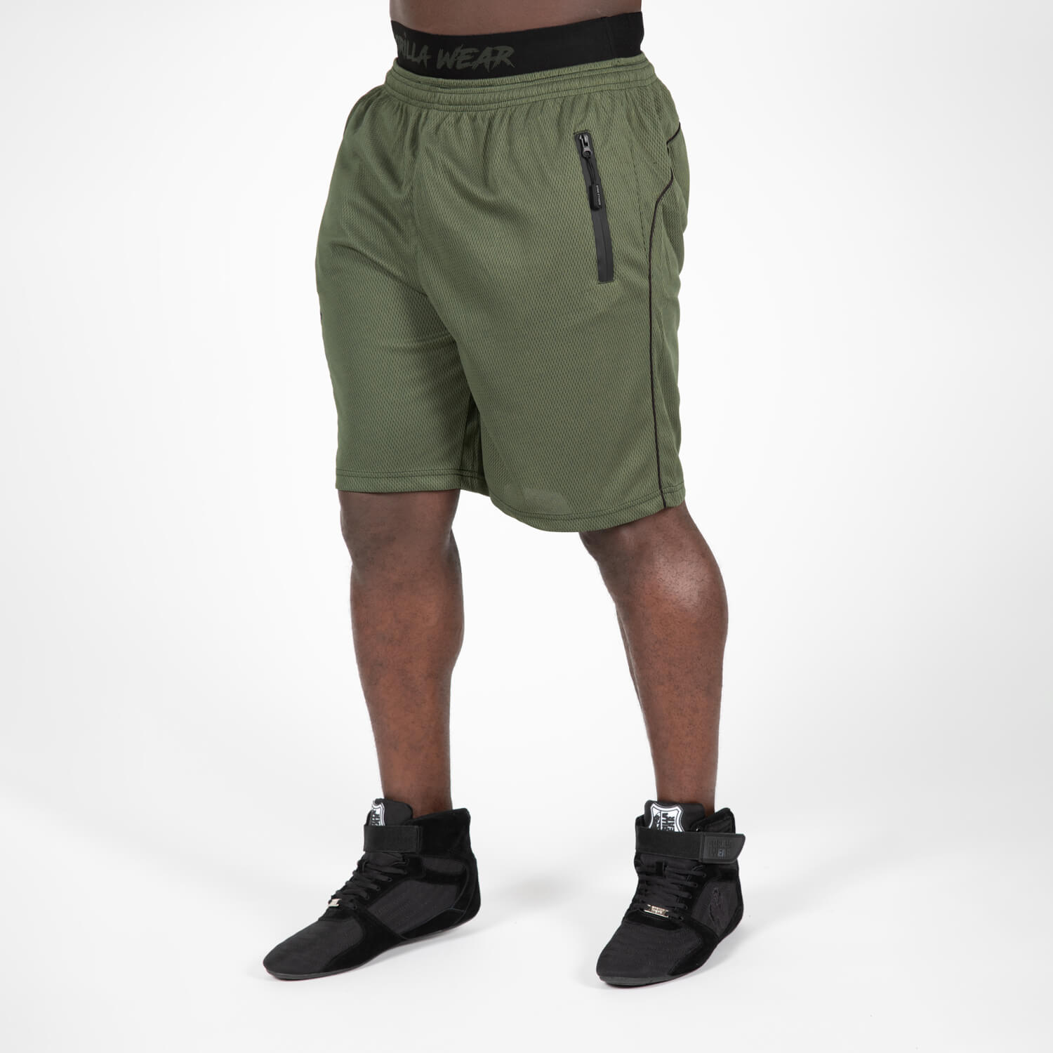 The Mercury Mesh Shorts is one of Gorilla Wear’s classics. These oversized shorts are perfect for workouts due to lightweight and breathable mesh fabric. Mercury Mesh Shorts features an unique elastic waistband and convenient zipper closure front pockets. The shorts are equipped with big Gorilla Wear logos both on the waistband and front leg to show everyone you’re part of #TeamGorillaWear. Prefer pants over shorts? Both are available in our webshop.