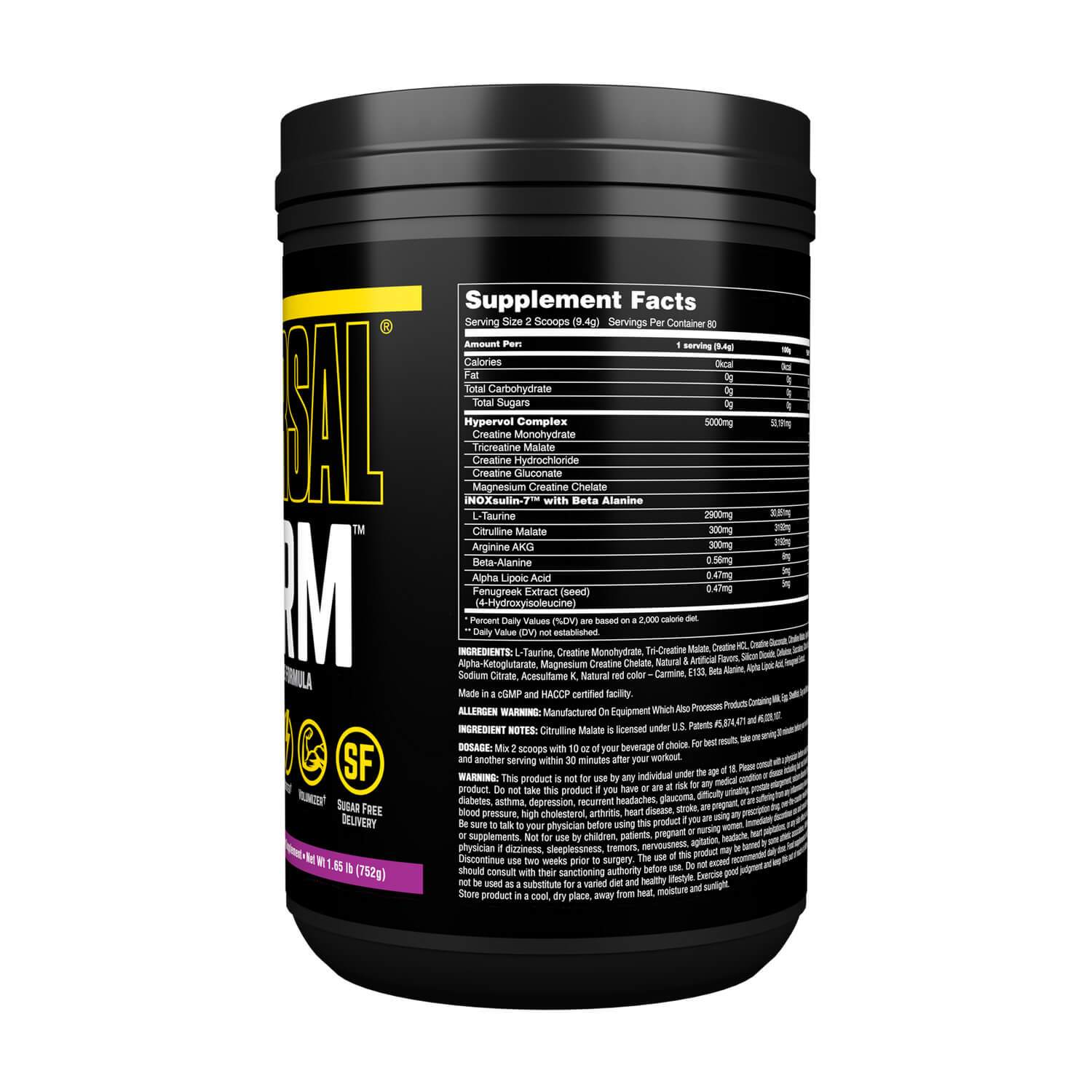 L-Taurine, Creatine Monohydrate, Tri-Creatine Malate, Creatine HCL, Creatine Gluconate, Citrulline Malate, Arginine Alpha-Ketoglutarate, Magnesium Creatine Chelate, Natural & Artificial Flavors, Silicon Dioxide, Cellulose, Sucralose, Citric Acid, Sodium Citrate, Acesulfame K, Natural red color – Carmine, E133, Beta Alanine, Alpha Lipoic Acid, Fenugreek Extract.