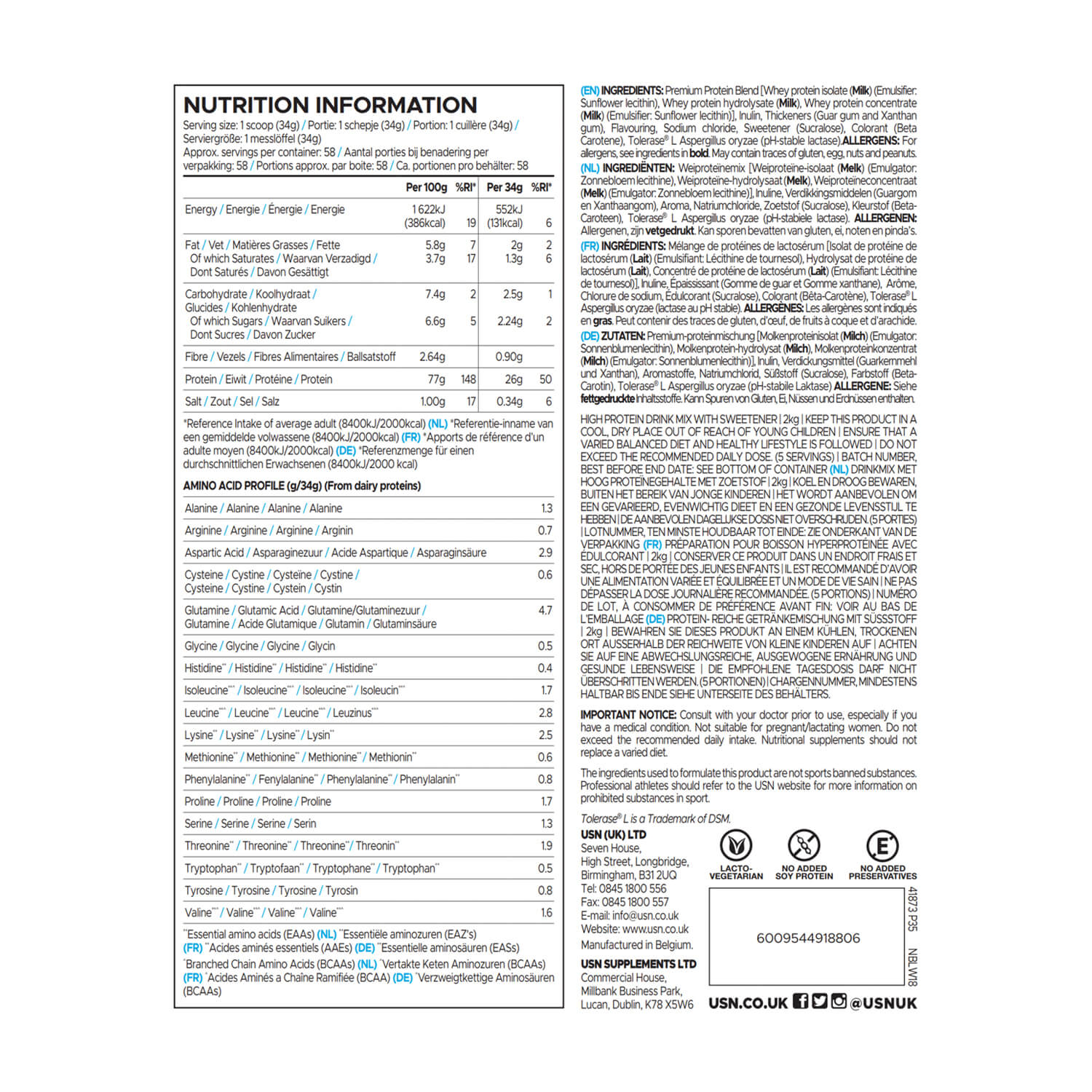 USN uses current, up-to-date, peer-reviewed nutritional research throughout the development of our products and continue to employ the latest manufacturing protocols. USN manufactures its products according to stringent GMP and BRCGS regulations (where applicable) and, therefore, takes proactive steps to ensure that our products are safe and effective. As part of this system, we ensure that the ingredients used in USN products: