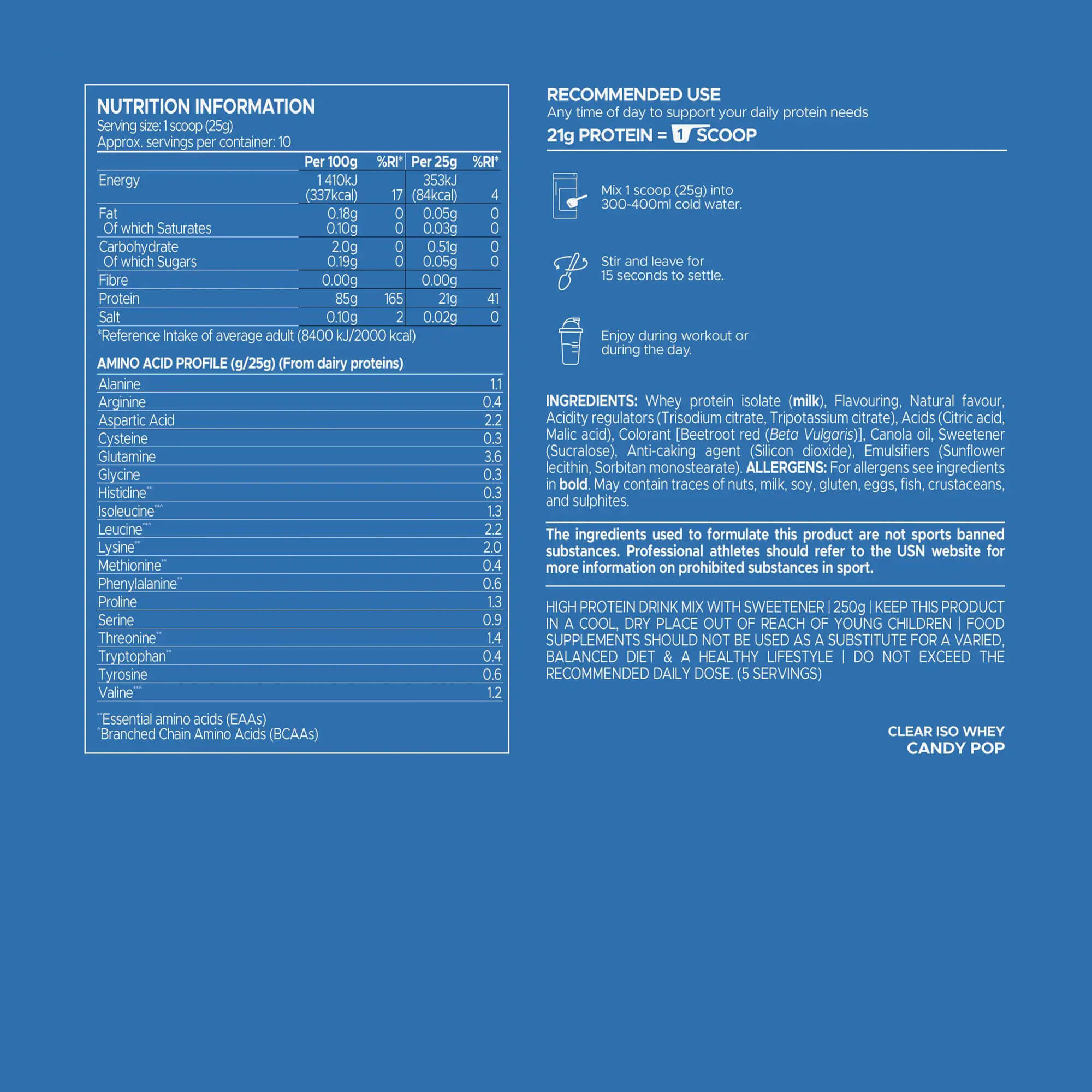 USN CLEAR-ISO 100% WHEY 250g (Candy Pop)