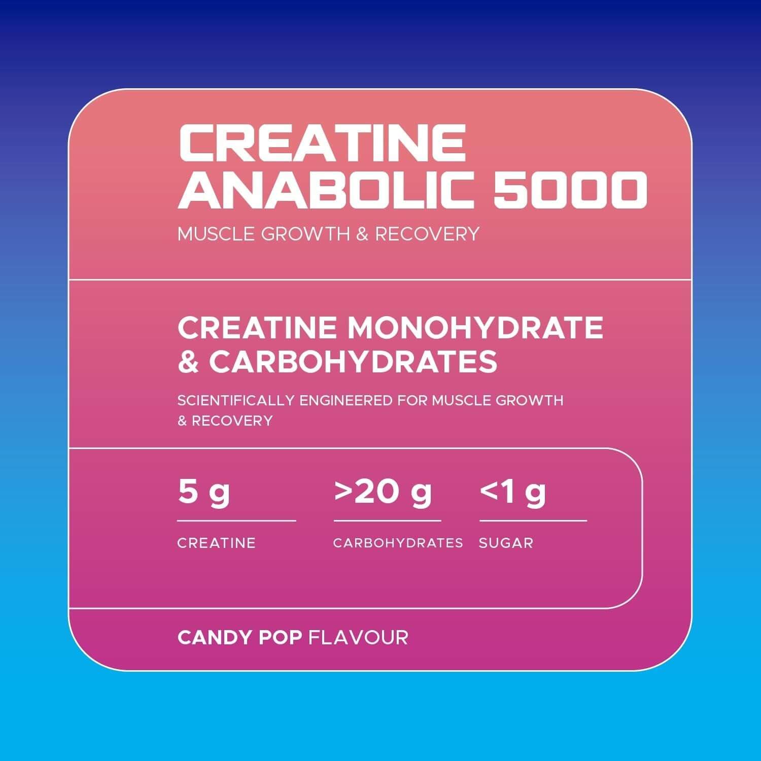 - HIGH-PERFORMANCE CREATINE FORMULA – Packed with 5g of creatine monohydrate, Creatine Anabolic 5000 supercharges your muscle strength, power, and explosive performance, making it ideal for high-intensity workouts.