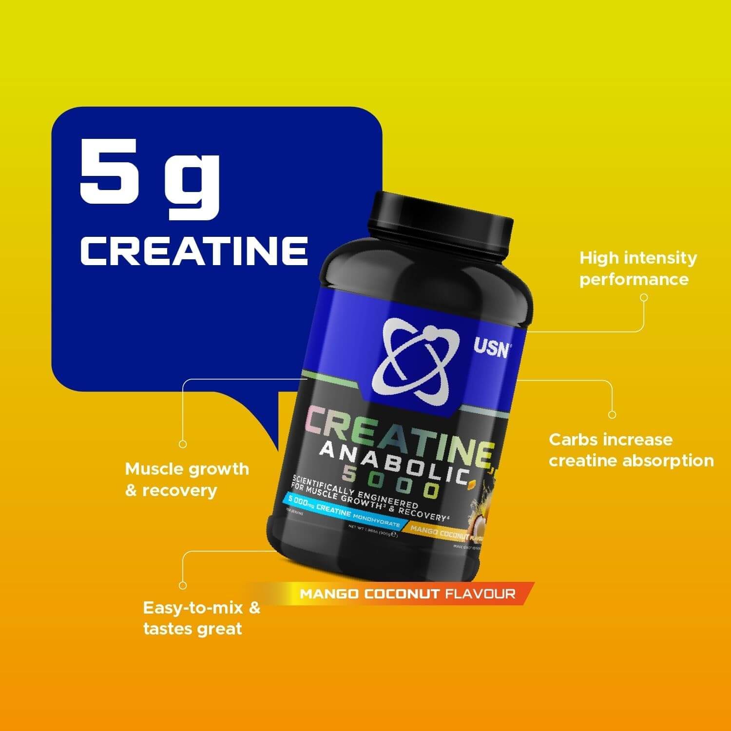 USN CREATINE ANABOLIC 5000 900g (Mango Coconut)
