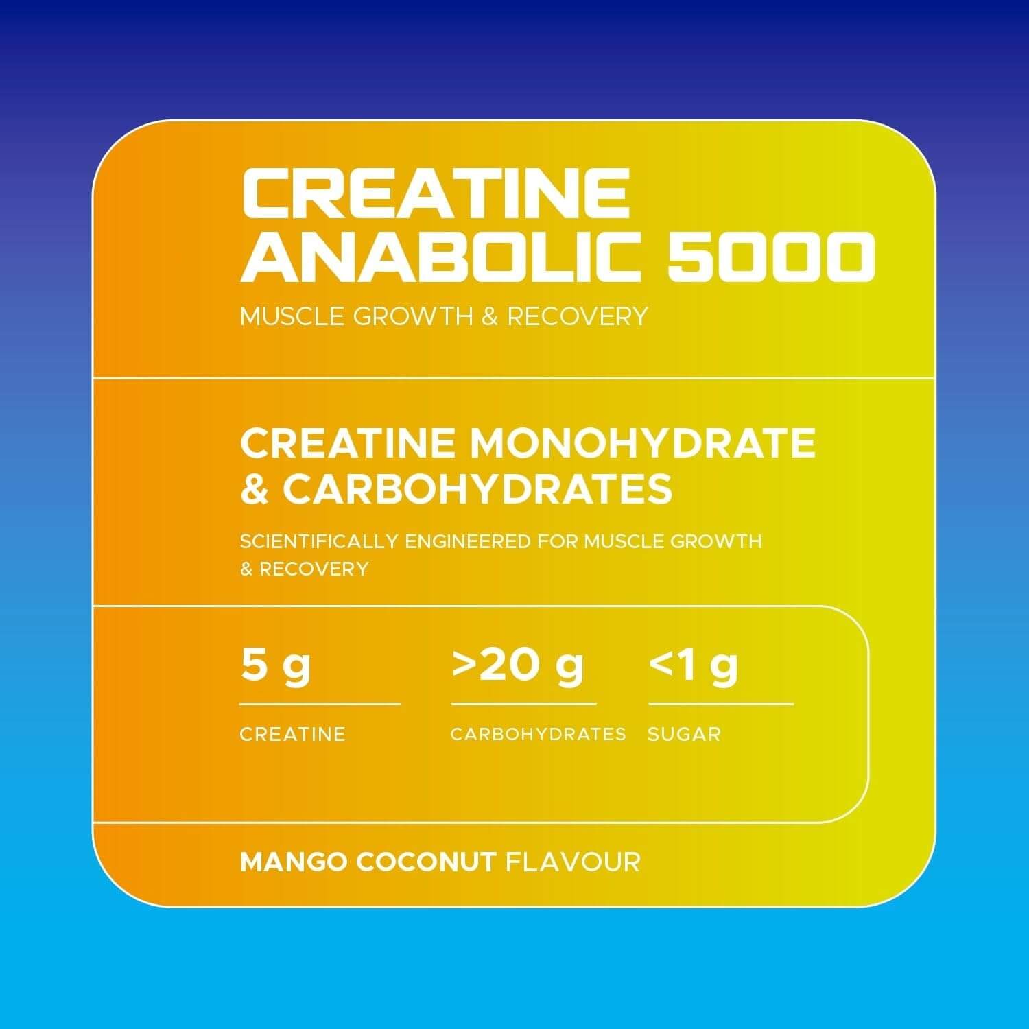 - HIGH-PERFORMANCE CREATINE FORMULA – Packed with 5g of creatine monohydrate, Creatine Anabolic 5000 supercharges your muscle strength, power, and explosive performance, making it ideal for high-intensity workouts.