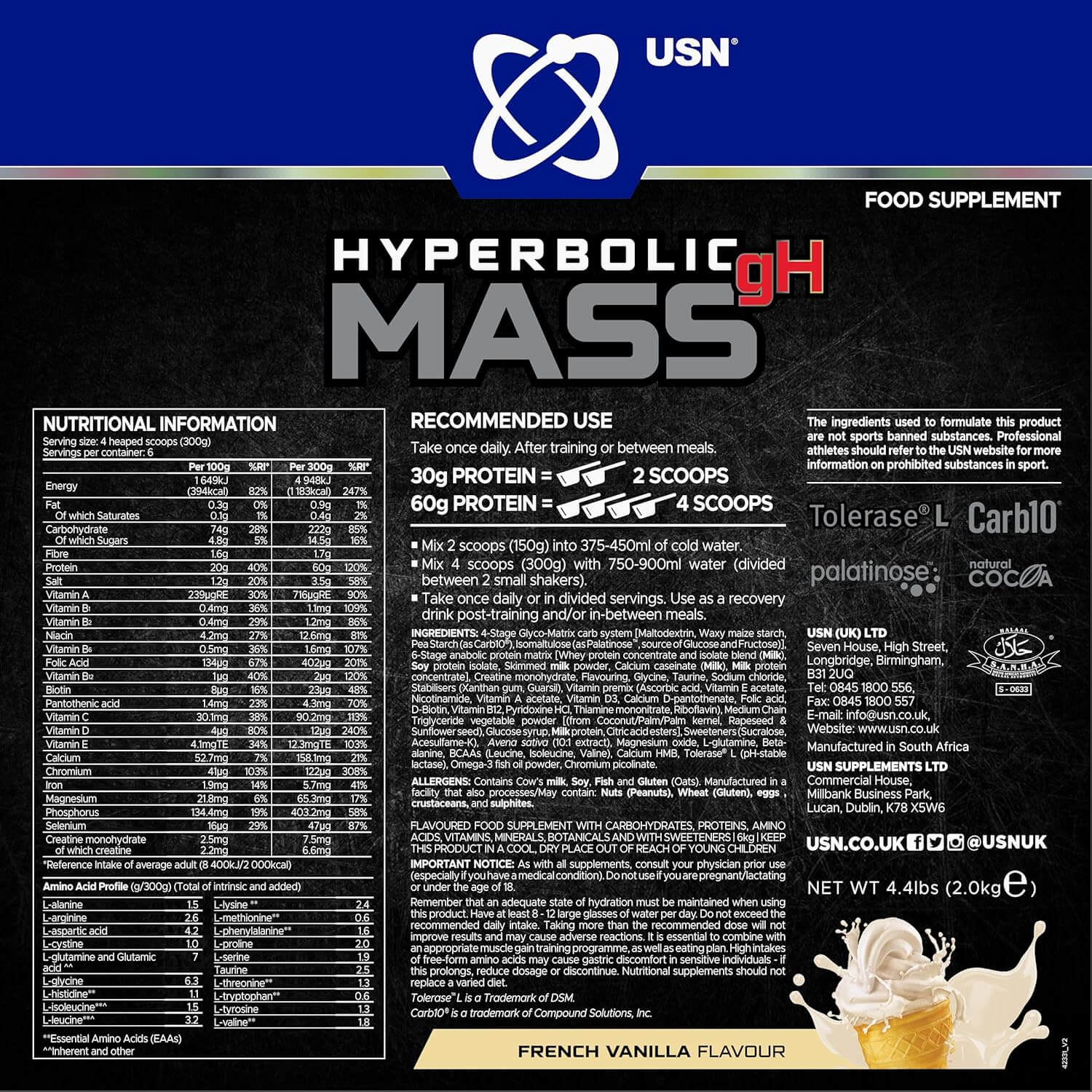 USN HYPERBOLIC MASS gH 2 Kg (French Vanilla)